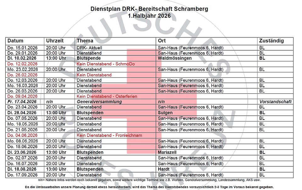 Dienstplan der Bereitschaft 2026-1